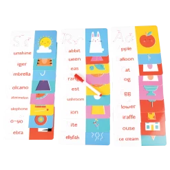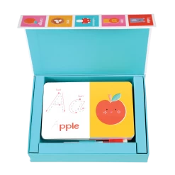 Learn how to write out your ABC’s with this set of 26 write and wipe cards! It includes a wipe pen and colourful illustrations with each letter to help kids visualize each word.