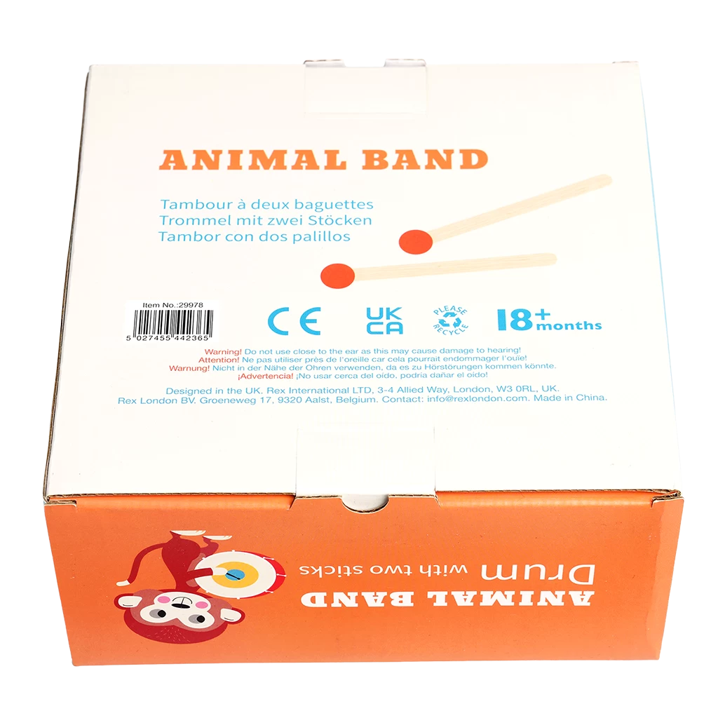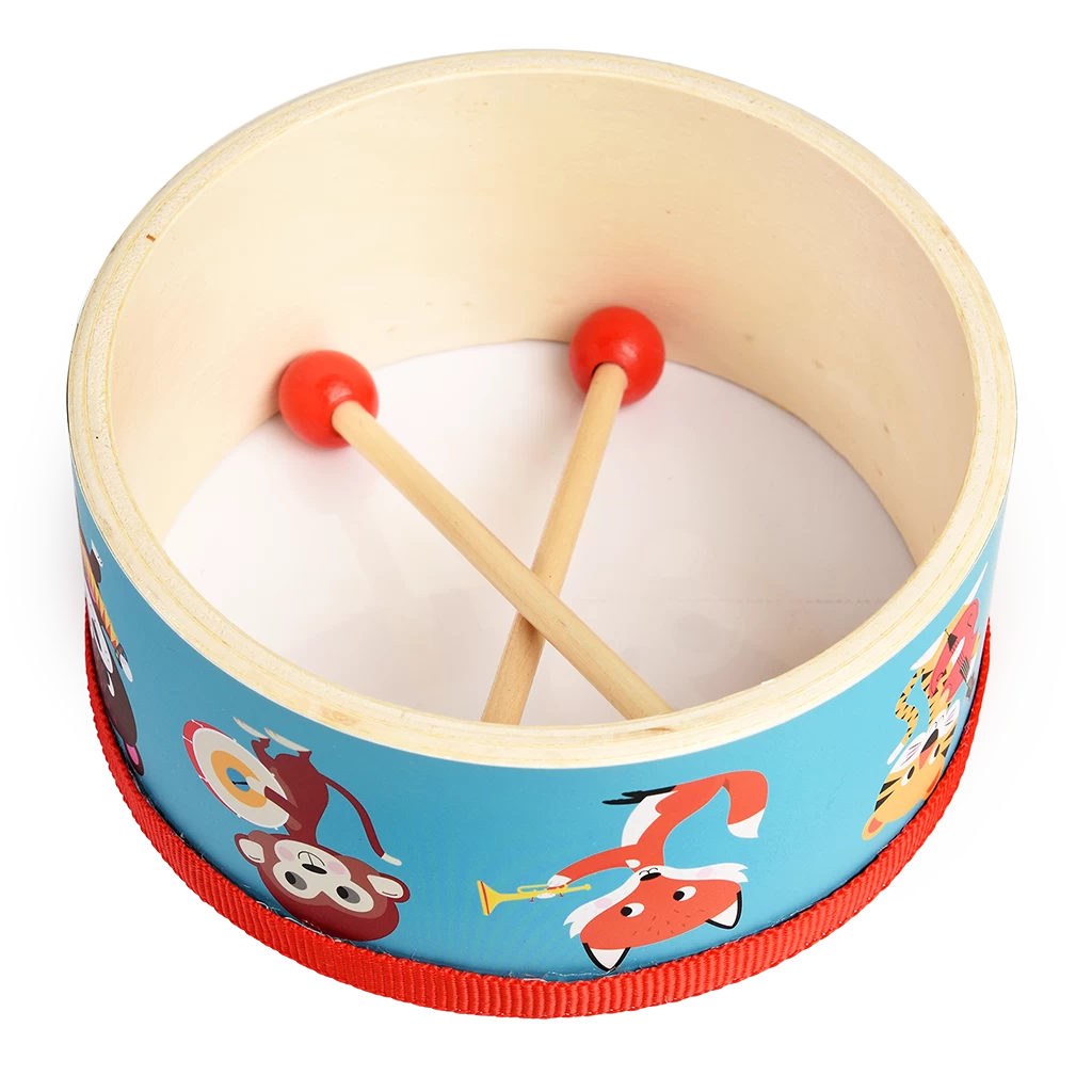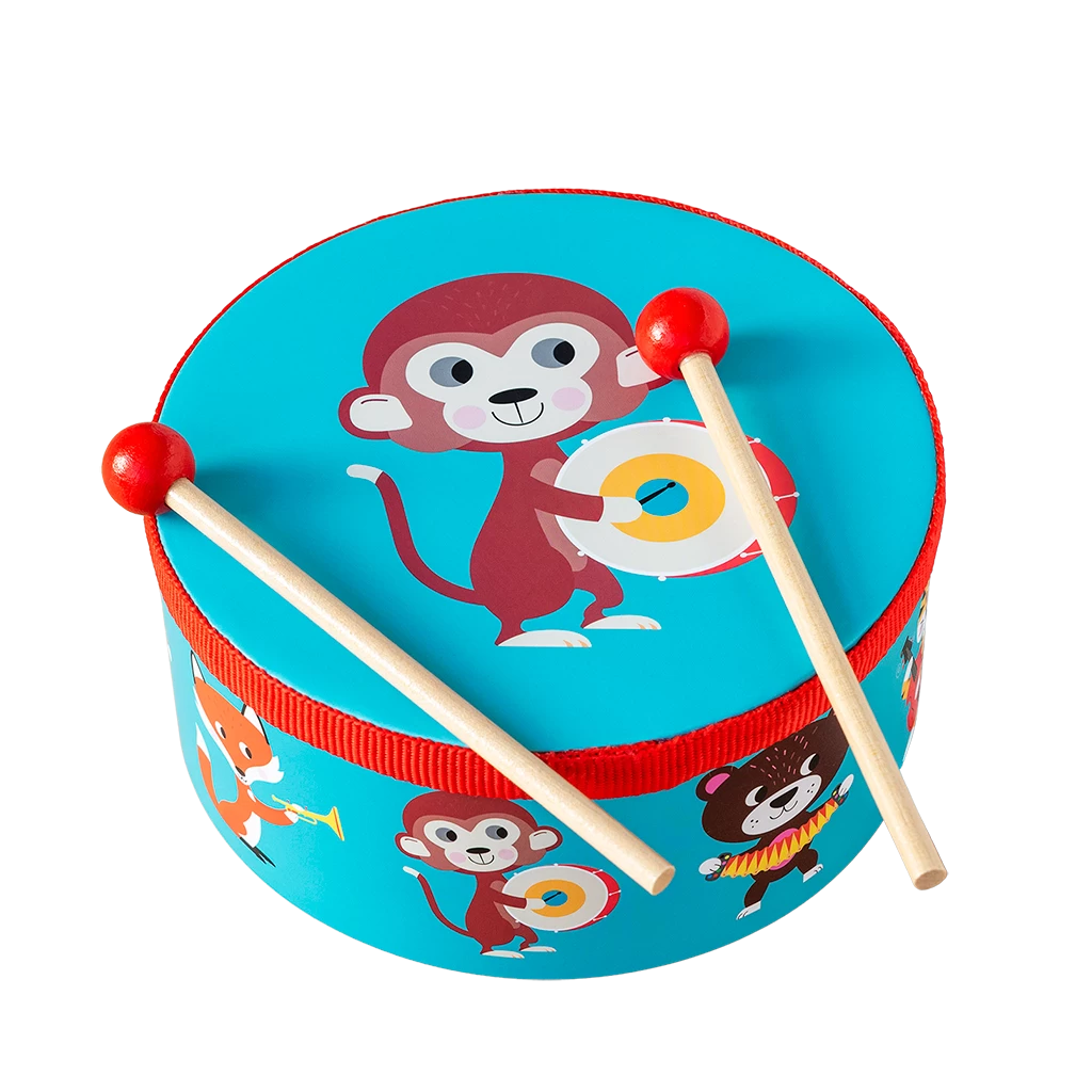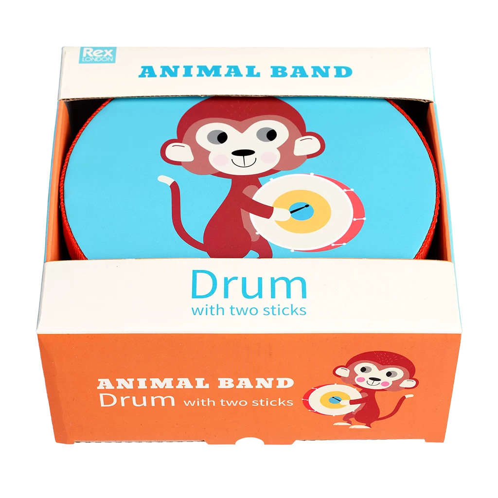 Get ready to make some noise with our Animal Band! A drum is a great way to introduce little ones to rhythm, and cause and effect. This one include a pair of drumsticks, and features fun animal characters playing musical instruments.