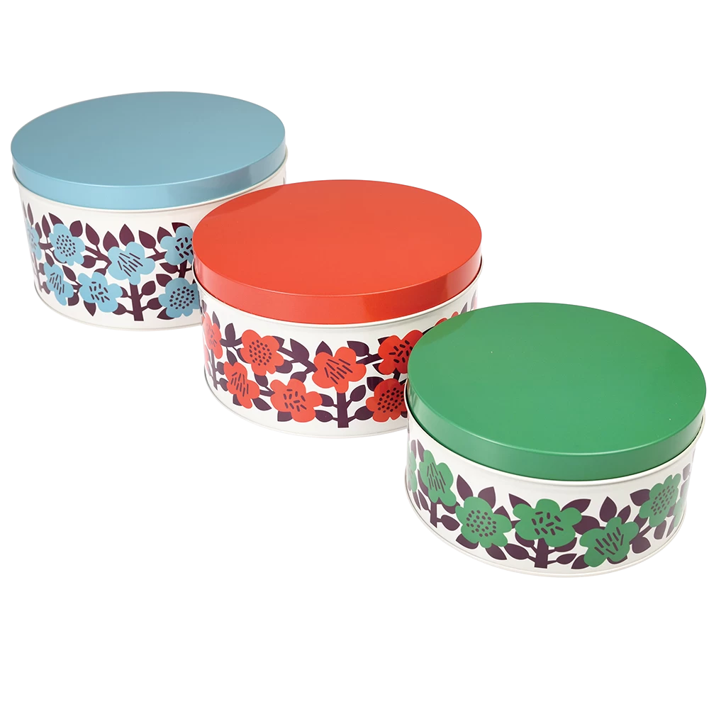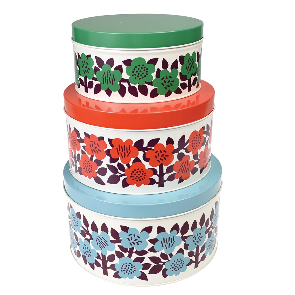 Add a retro splash of colour to your kitchen with this bold set of nesting tins, perfect for keeping your baked goods fresh.