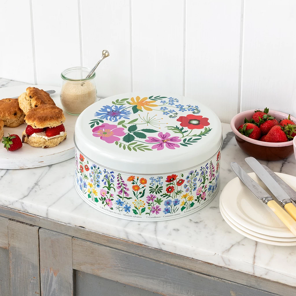 No kitchen is complete without a cake tin! This round cake tin features a botanical Wild Flowers print, perfect for keeping homemade cakes and bakes fresher for longer. Display on shelves for a pop of floral style or store neatly away in the cupboard.