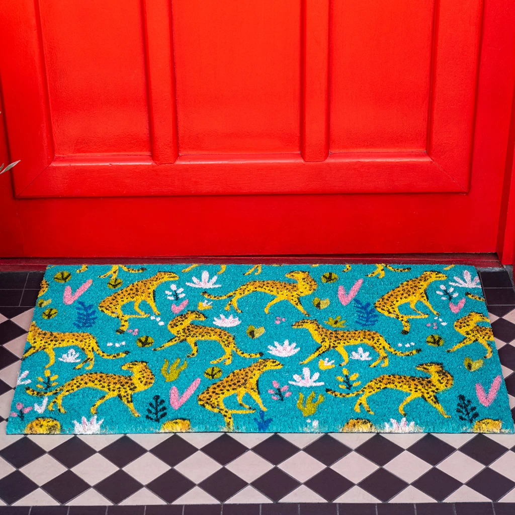 Welcome guests into your home in style with this unique, stand-out doormat in a bright Cheetah design. This stylish coir doormat will help keep your floors clean and dry.