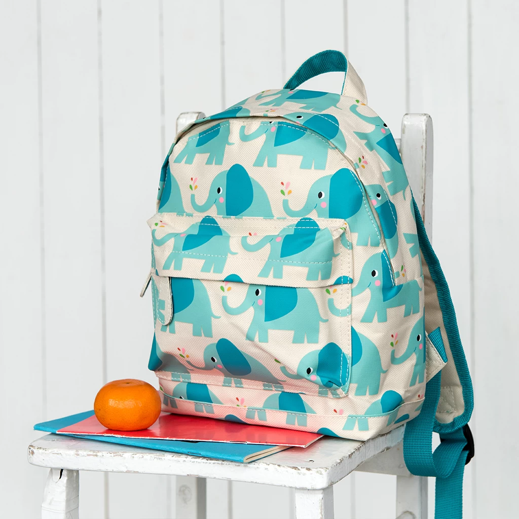 This mini Elvis the Elephant design children’s backpack is just brilliant for school, days out at the beach, picnics and hiking. With a carrying handle and adjustable padded shoulder straps it has a padded back for comfort. Zipped main compartment and small front pocket for easy access.