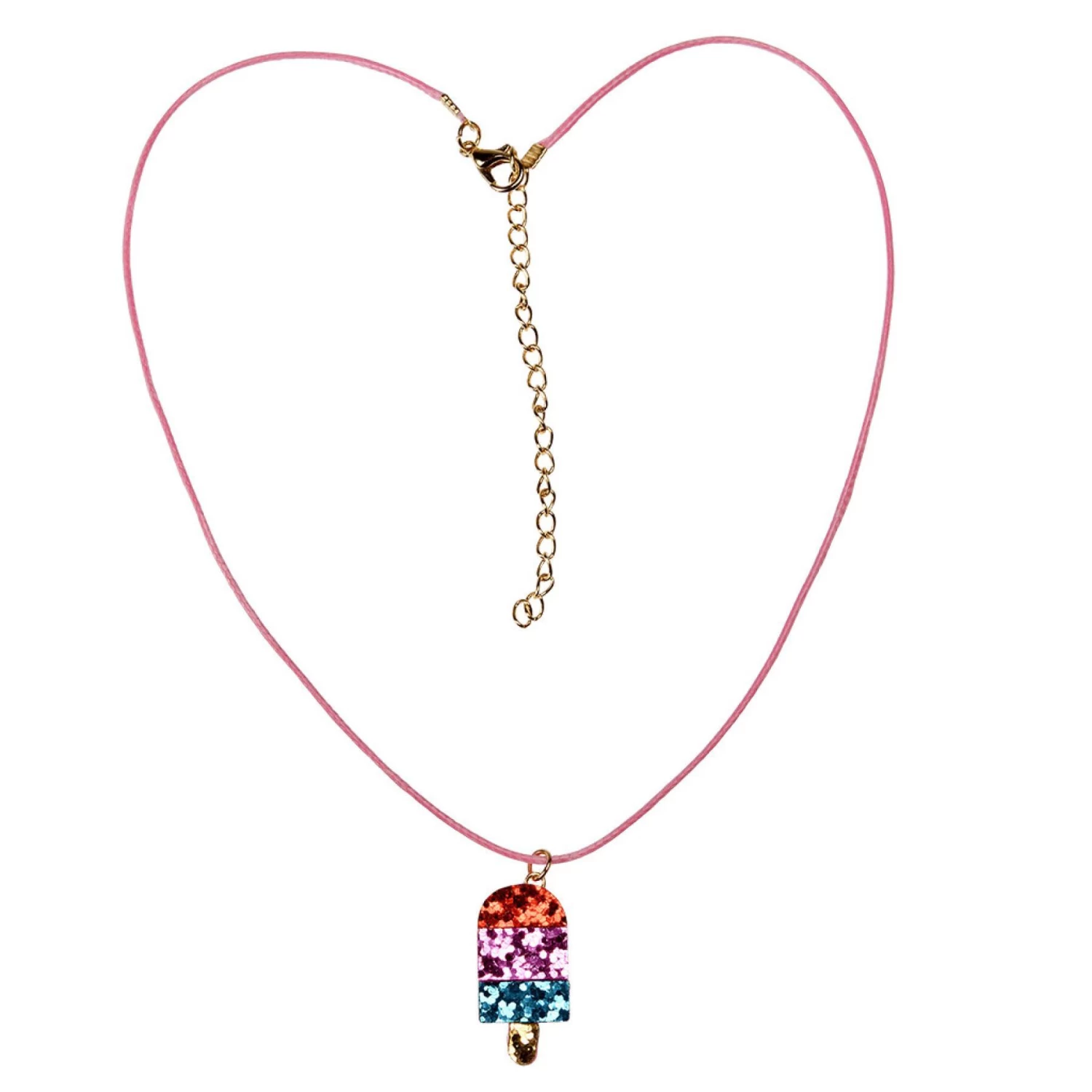 This sparkly necklace with a striped glitter stick on a pink cord is an adorable fashion accessory for kids.Not suitable for children under three (choking hazard. small parts)Includes gold lobster clasp and extension chain (42 cm to 50 cm)Charm 2.7 cm x 1.4 cmMaterial: Cord. Felt. Glitter. MetalProduct dimensions: Weight: 2.1gProduct dimensions packed: Width: 7cm. Length: 13x.5cm. Weight: 11.5g