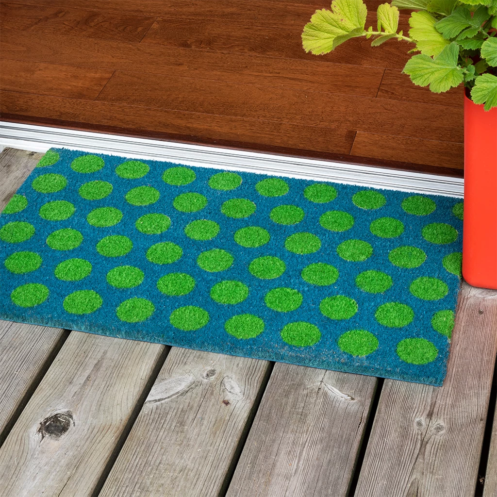 Brighten up doorways and welcome guests into your home in style with this bold yet muted green on blue Spotlight doormat. This stylish coir doormat will help keep your floors clean and dry, whether it’s displayed in the front porch or by the back door.