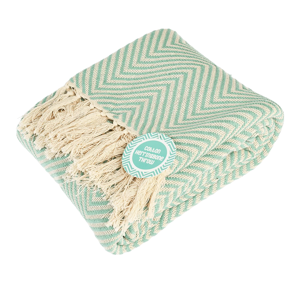 Snuggle up in style with this aqua herringbone throw. Made from 100% cotton, this green herringbone blanket is an ideal covering for a sofa, chair or end of a bed.