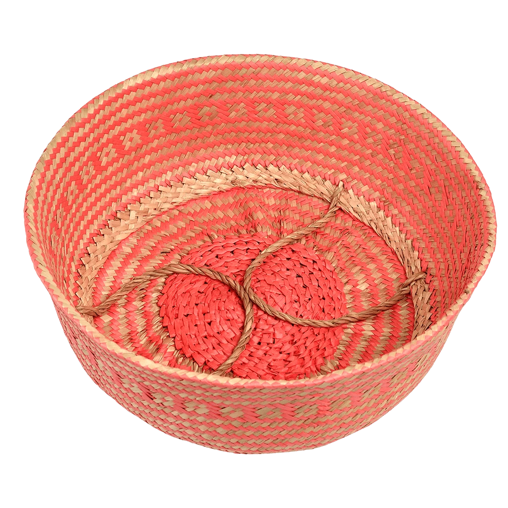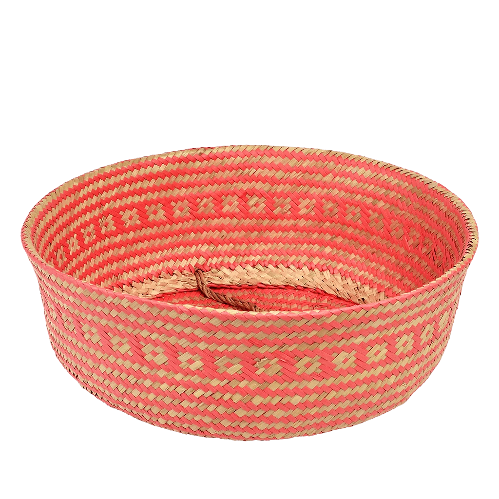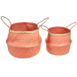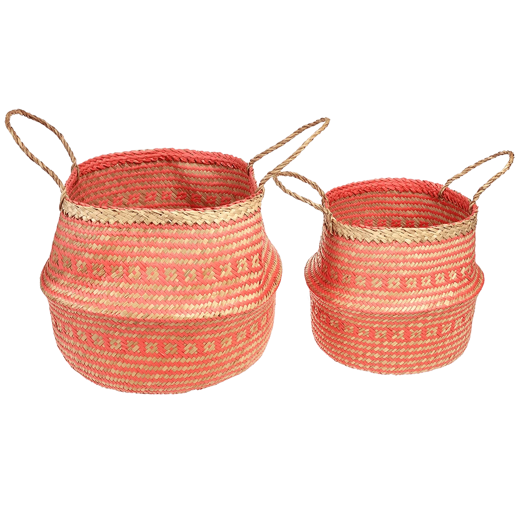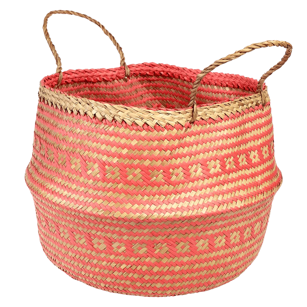 This large handwoven seagrass basket with a pop of coral is perfect for eye-catching storage in any room from the bathroom to the kids’ playroom. You can use it two ways; turned up with handles for maximum storage size, or turned down to better display contents. Also available in a small size.