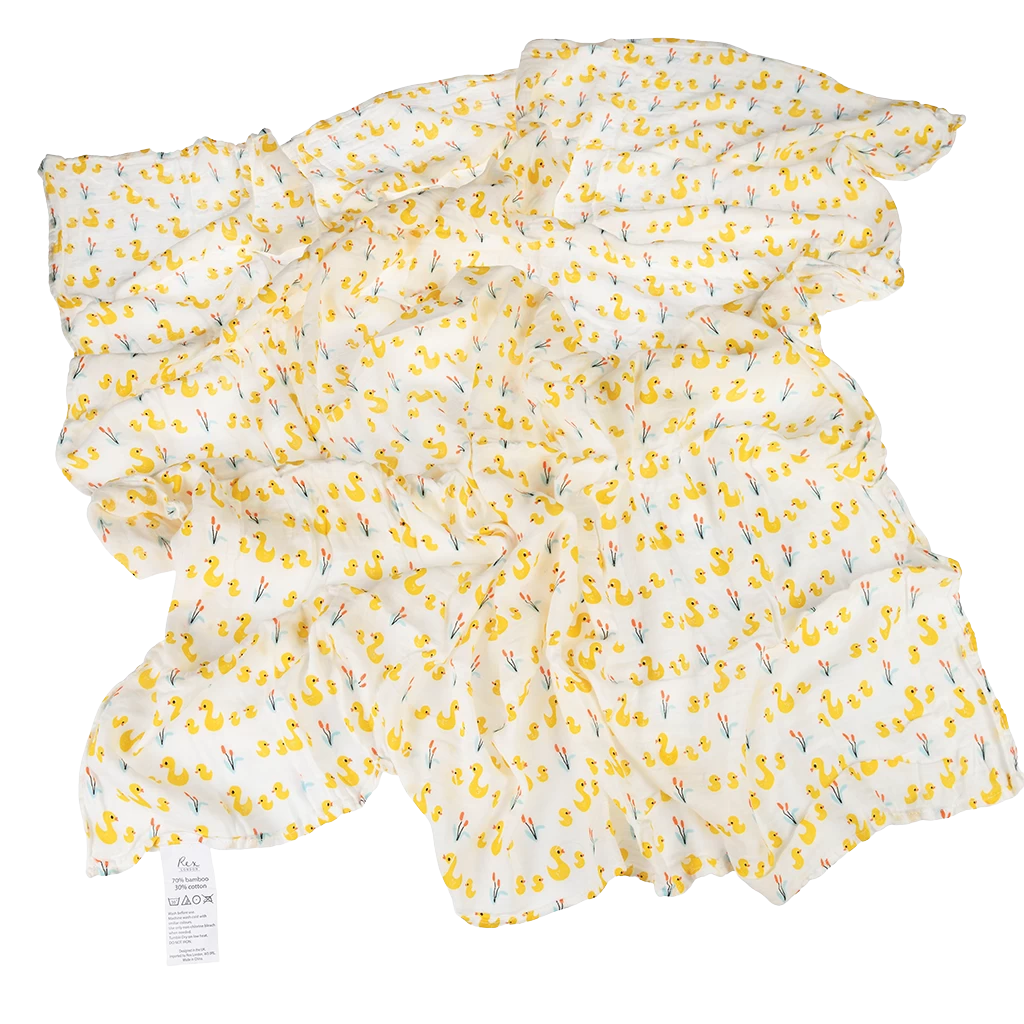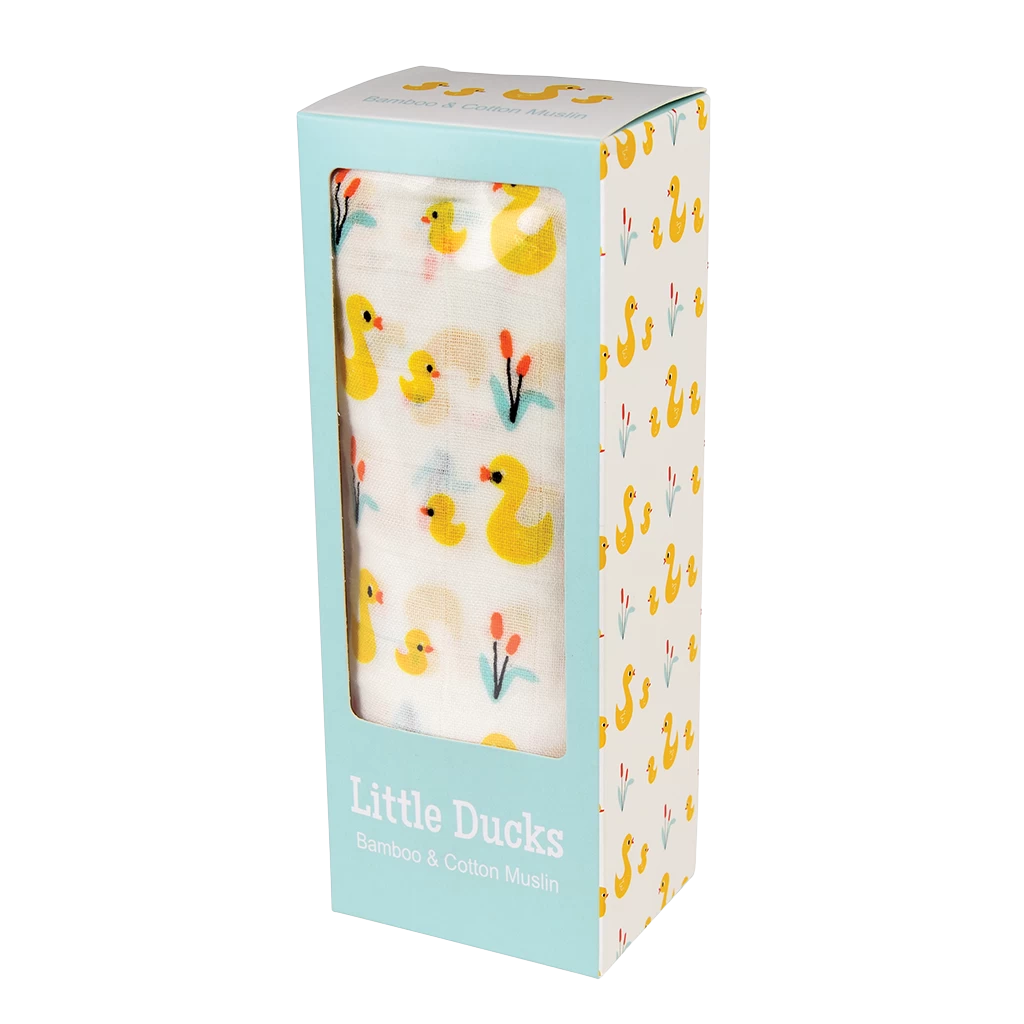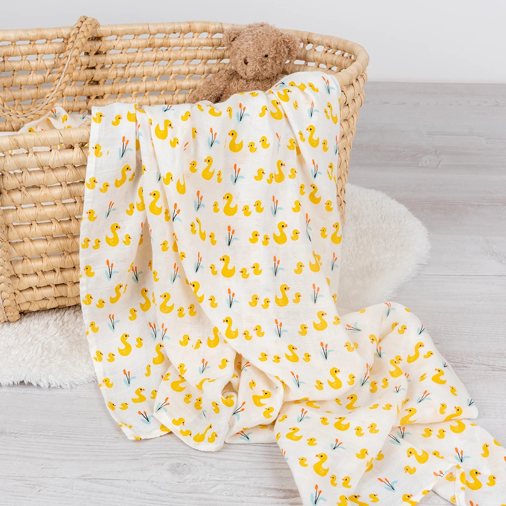 This Little Ducks swaddling blanket is cute and multi-functional. You can use this bamboo and cotton muslin as a cot sheet, burping cloth or feeding cover too!