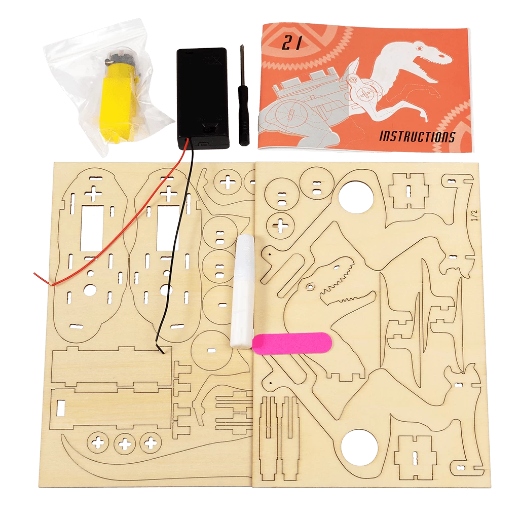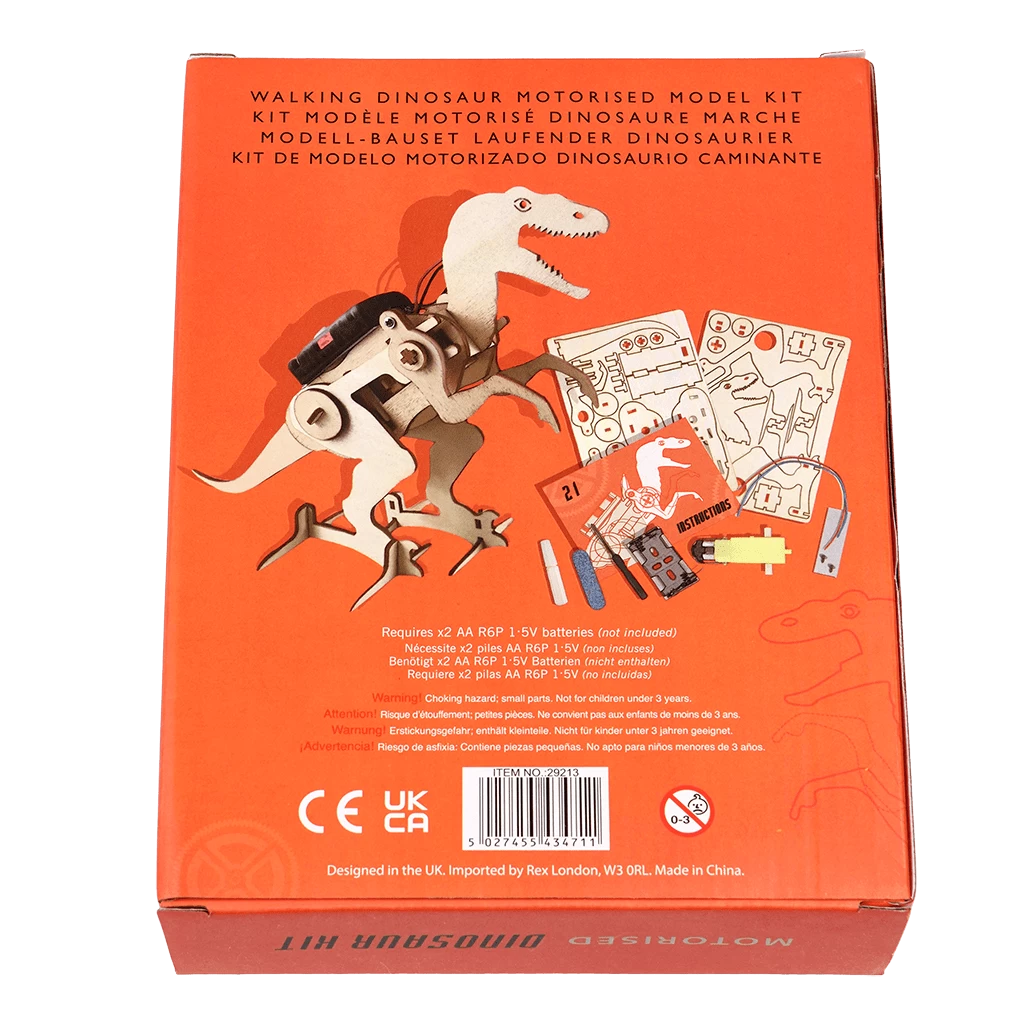 This DIY kit contains everything you need to build a motorised model dinosaur! This clever kit makes use of a battery-powered motor to make the dinosaur walk. Suitable for children aged 8+.