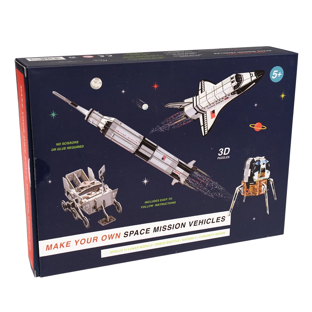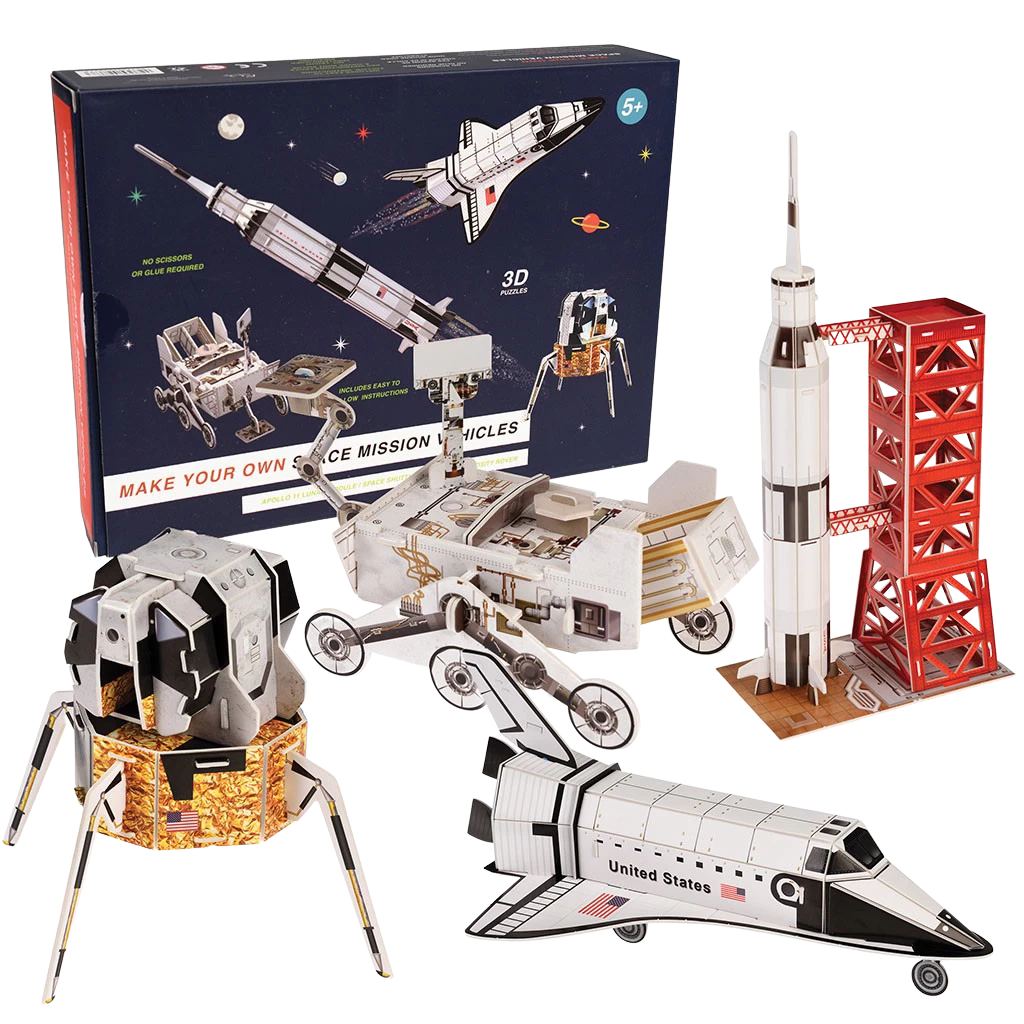 Prepare for blast-off! Get ready for plenty of interplanetary missions with this Make Your Own Space Mission Vehicles set. This kit contains everything you need to construct four iconic 3D space vehicles.