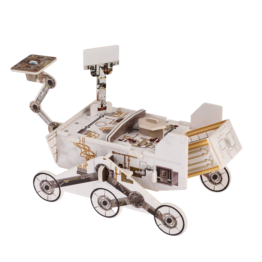 - Curiosity rover: 18 pieces. Measures: 18.5cm (length) x 8.5 cm (width) x 11cm (height)