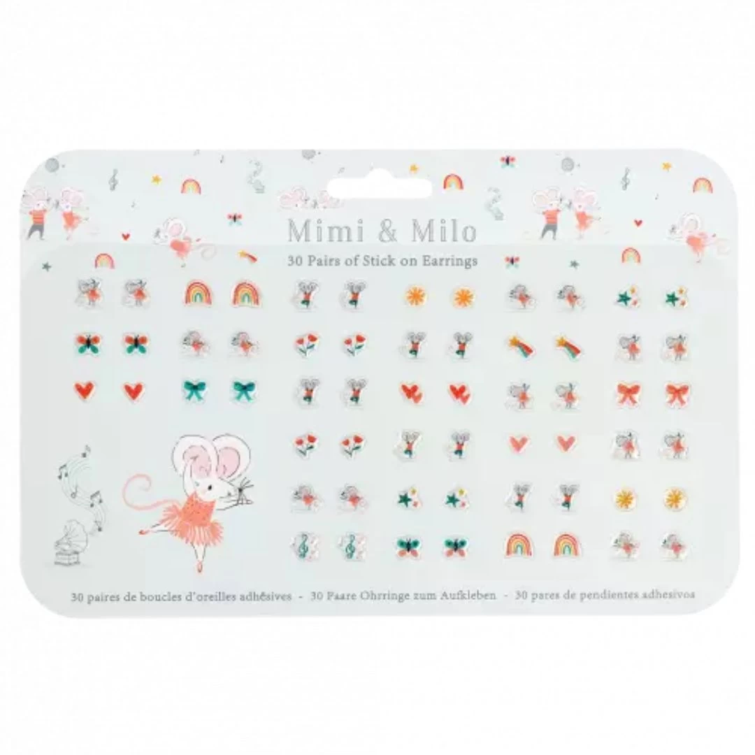 These fun stick on earrings are ideal for trendy tots who want to wear earrings, without the need for pierced ears! This set of stick on earrings features rainbows, hearts, bows and dancing mice, perfect for trying out a whole range of looks.