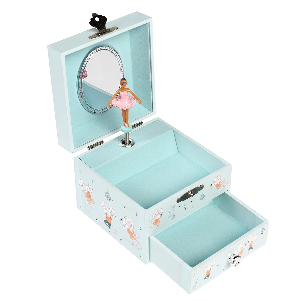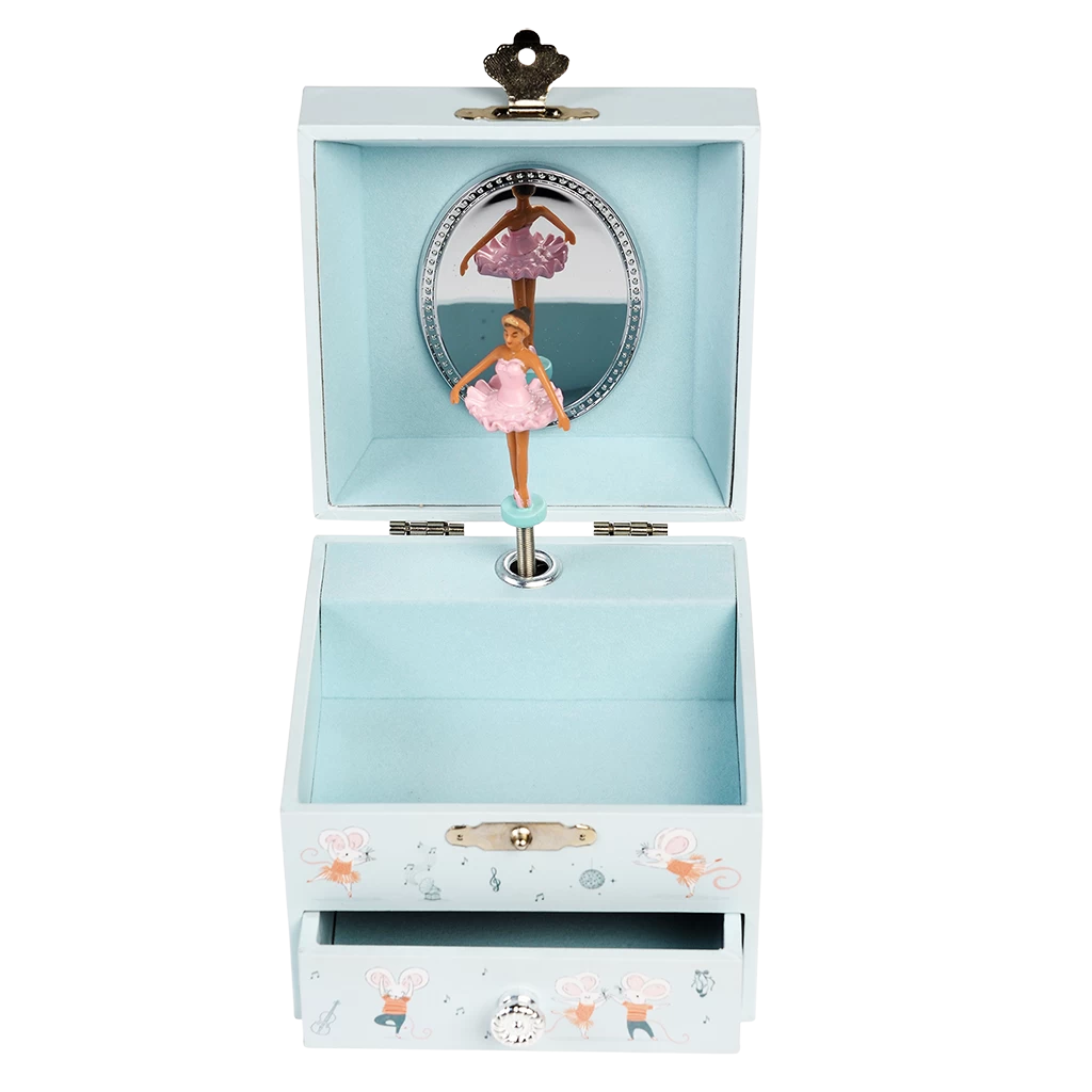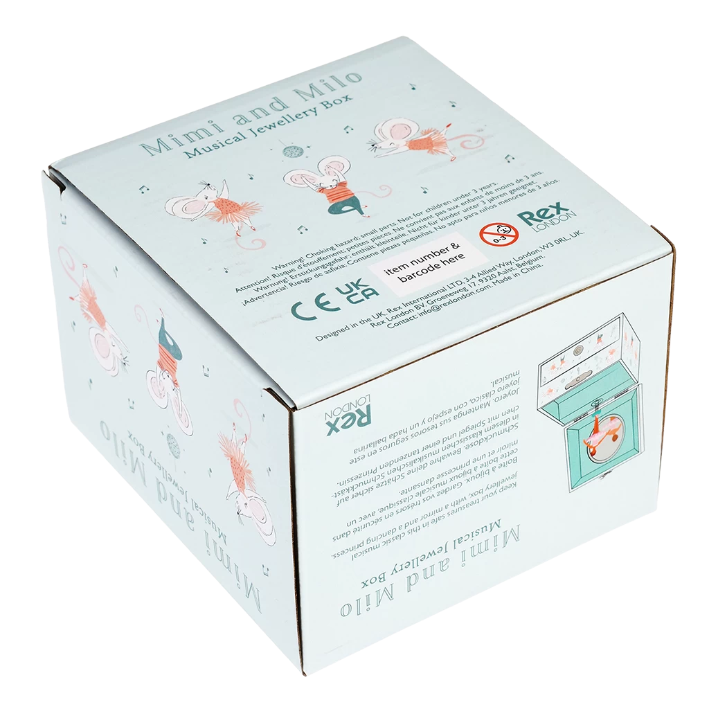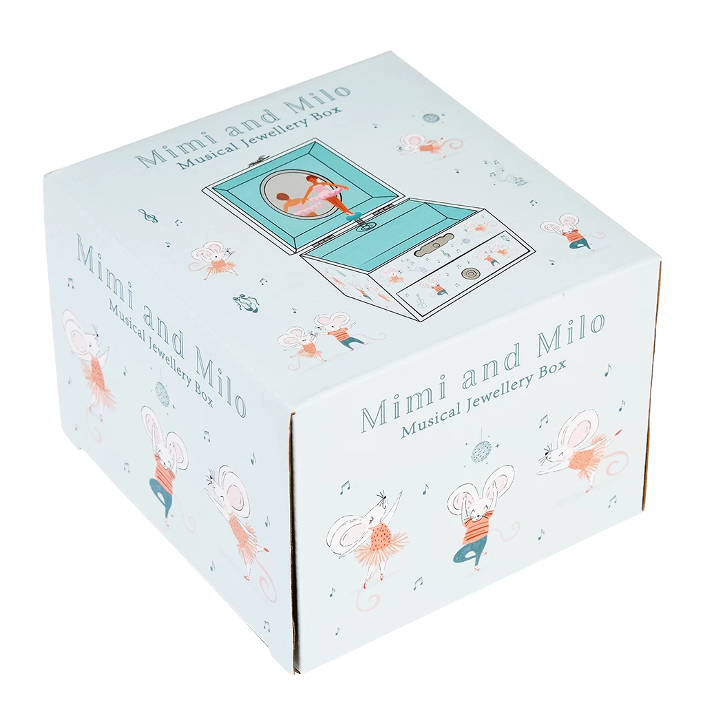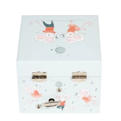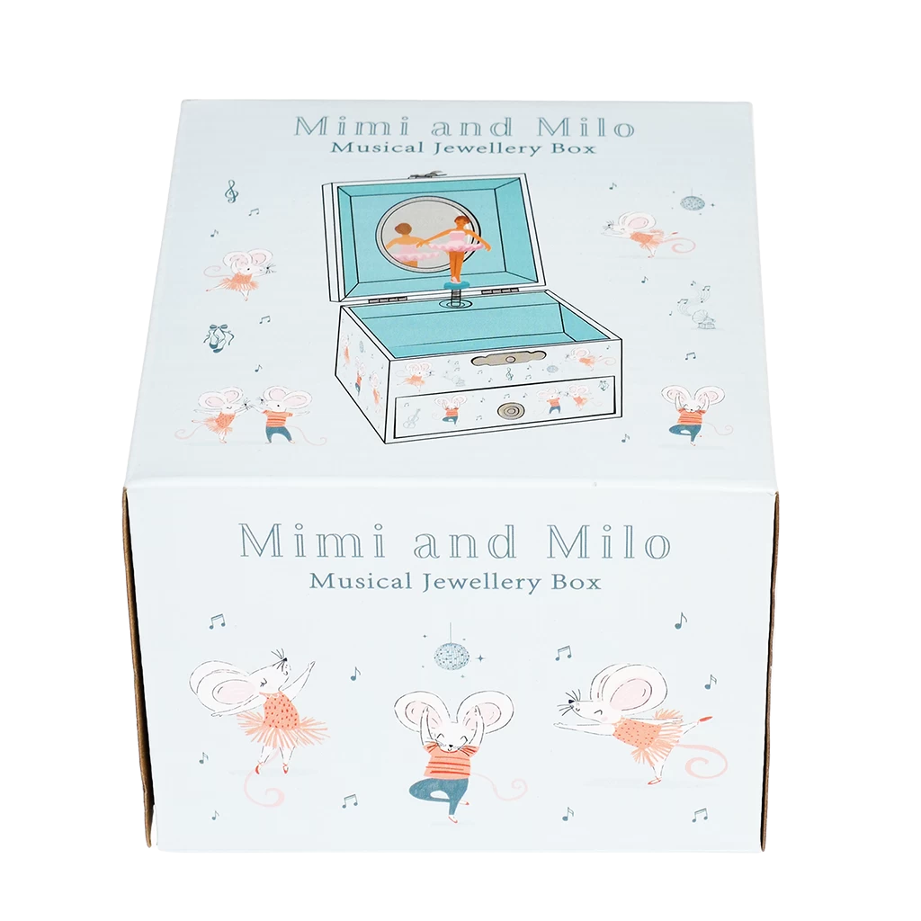 Delight little ones with this traditional jewellery box, featuring Mimi and Milo, our adorable dancing mice. This children’s jewellery box is ideal for storing precious keepsakes, hair accessories, jewellery and more. Simply lift the lid to reveal a twirling, musical ballet dancer.