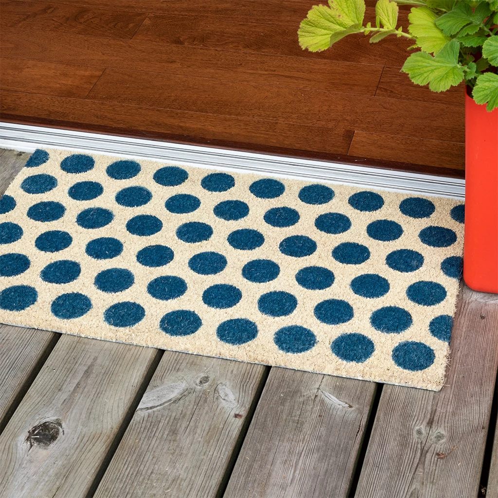 Brighten up doorways and welcome guests into your home in style with this unique Spotlight doormat, featuring chic navy spots against a natural finish. This stylish coir doormat will help keep your floors clean and dry, whether it’s displayed in the front porch or by the back door.
