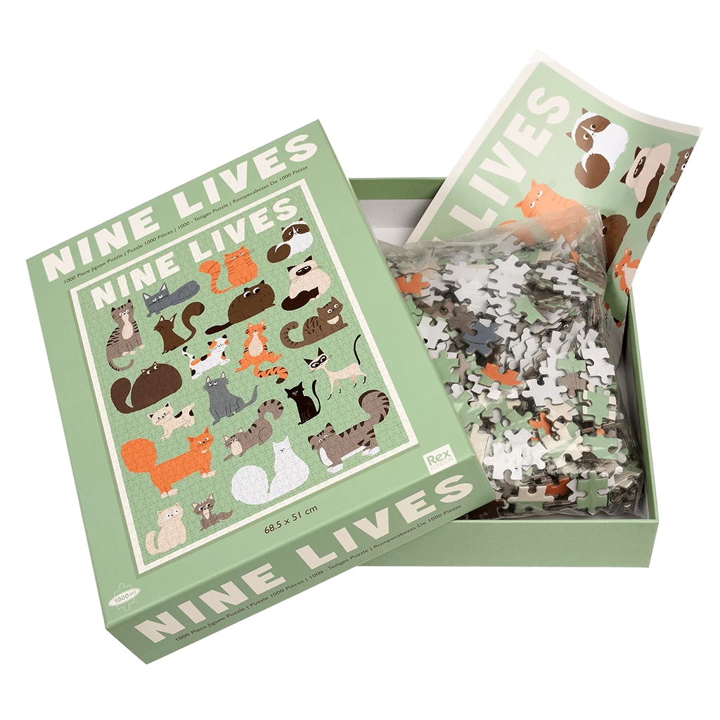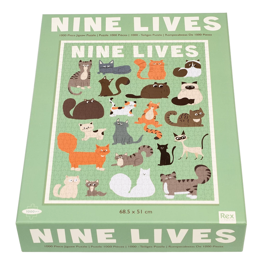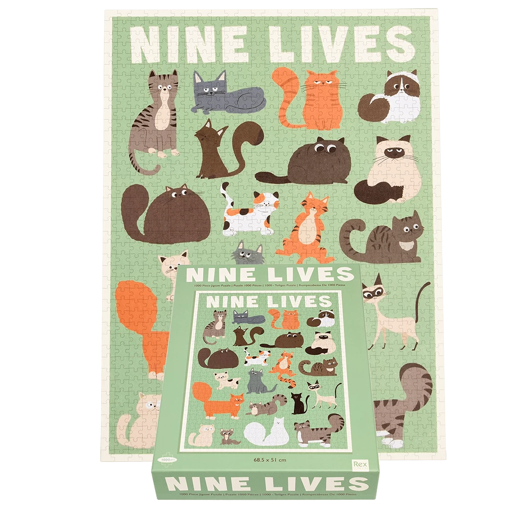 Feline fanatics will love this cat puzzle which features a host of cute cats from our Nine Lives collection. This 1,000 piece puzzle includes a colour sheet of the completed puzzle to help guide you.