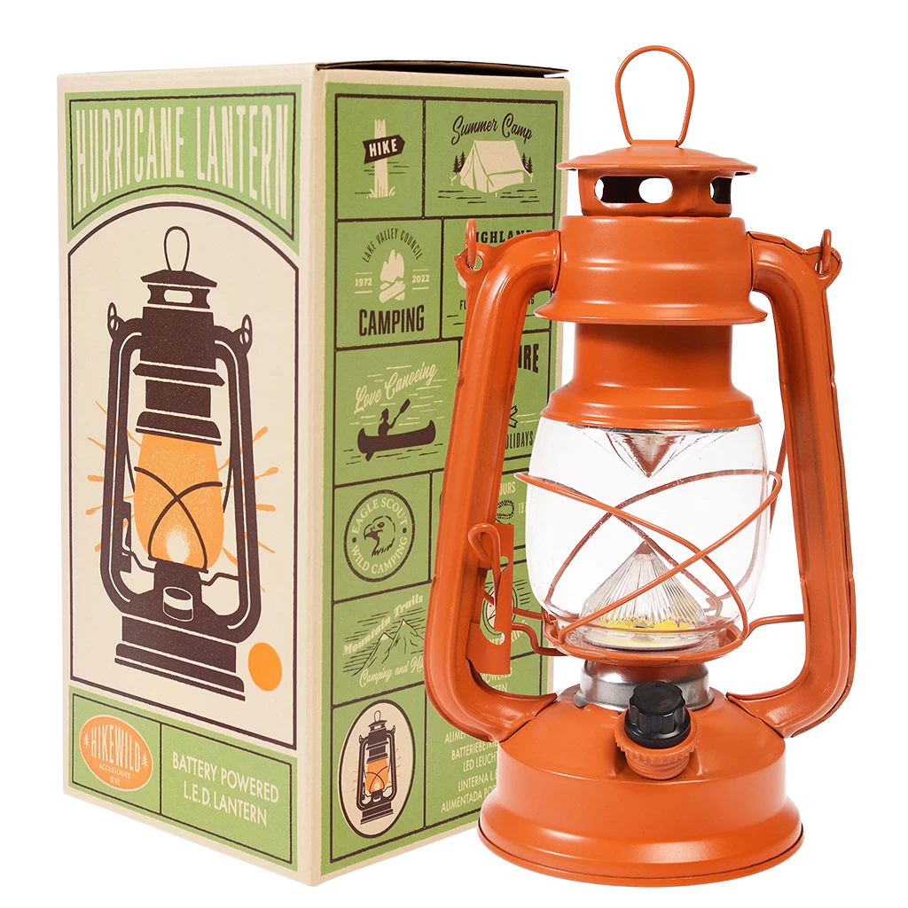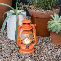 Create a cosy atmosphere in the garden or on your next camping trip with this burnt orange LED hurricane lantern. Powered by batteries (not messy lamp oil!), this vintage-inspired lantern has adjustable brightness for optimal outdoor lighting.