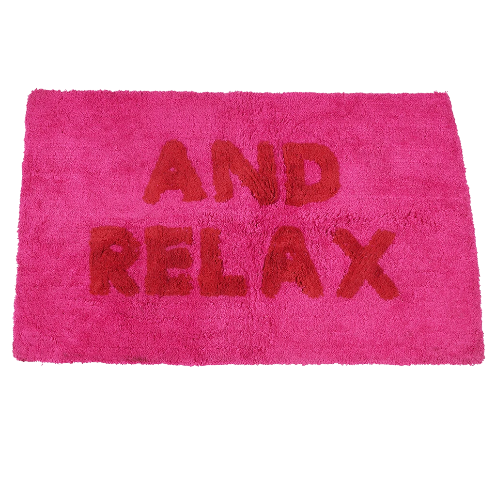 Add a burst of colour to bathtime with this pink ‘And Relax’ bath mat. This 100% cotton bath mat has a tufted texture, making it wonderfully soft and highly water absorbent. Perfect for colourful bathrooms!