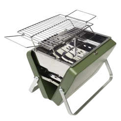 Grill up a feast on days out, camping trips, picnics at the park or caravan holidays with this suitcase barbecue! Portable and practical, this charcoal-fuelled suitcase barbecue folds away into a compact case with carry handle for easy transportation.