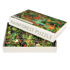 A beautiful gift or a fun pastime, this stunning rainforest jigsaw puzzle is inspired by the rainforest and the lush plants and exotic animals who live there.