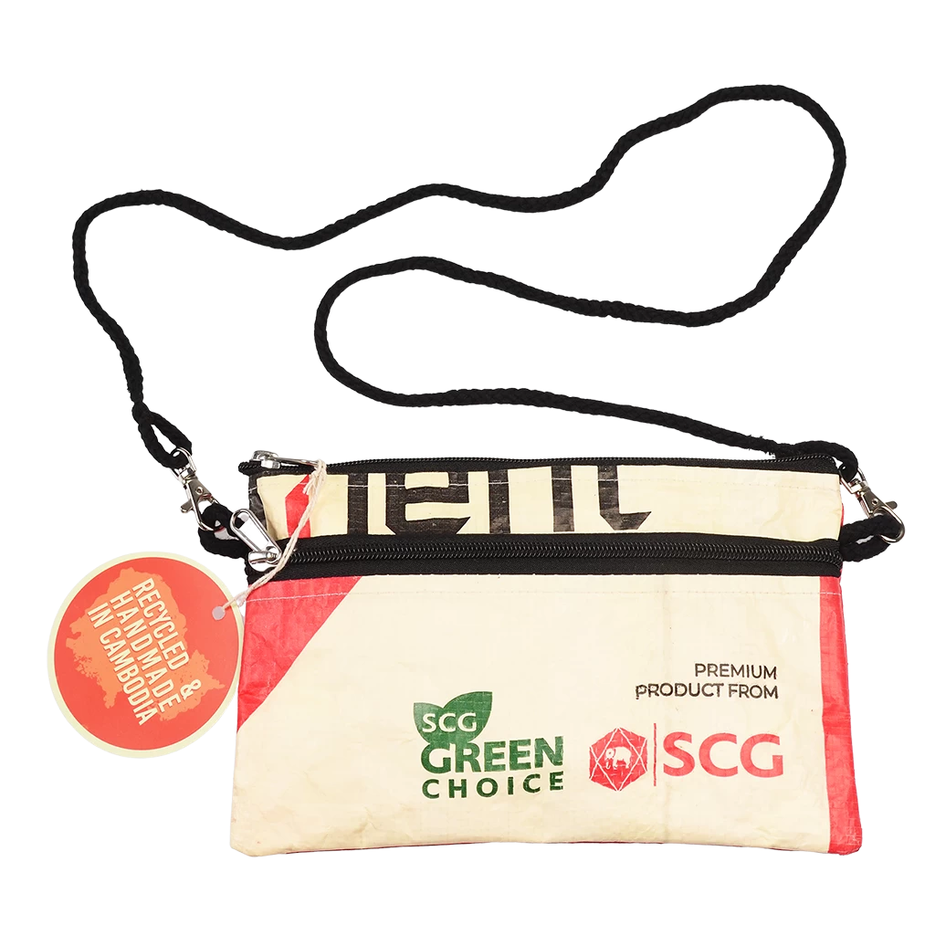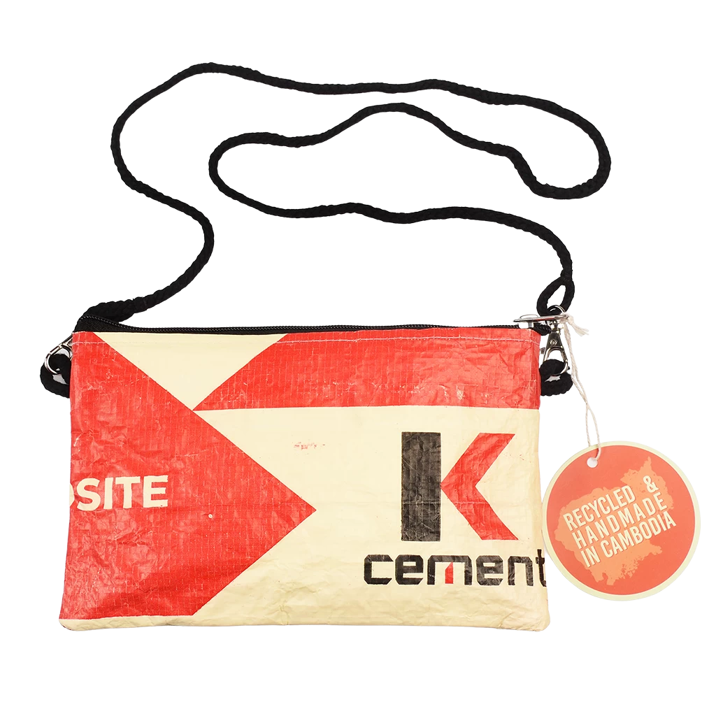 Look good, do good! This unique dual compartment travel pouch is handmade in Cambodia from recycled cement bags, helping to provide employment and income for vulnerable individuals, all while redirecting waste away from landfill.