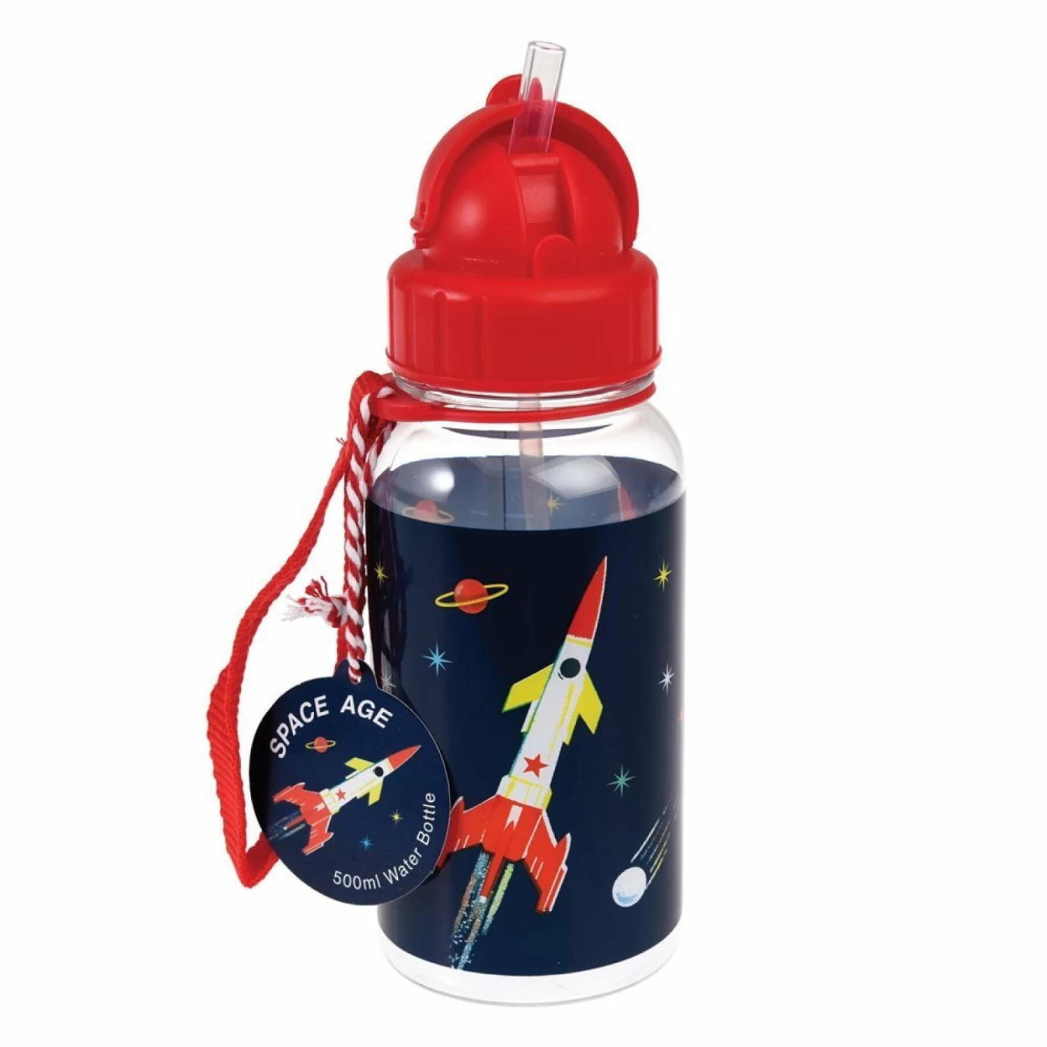 Keep your kids happy and hydrated with this reusable water bottle- Space Age. Contains a built-in straw for easy drinking. Built-in strawHand washVolume: 500ml Material: Plastic BPA FreeProduct Dimensions: Width: 7cm. Length: 7x20cm. Weight: 94gPackaged product dimensions: Width: 7cm. Length: 7x20cm. Weight: 94g