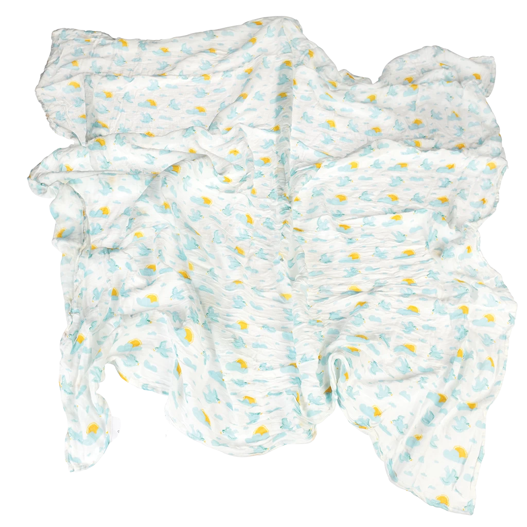 This Skylark swaddling blanket is cute and multi-functional. You can use this bamboo and cotton muslin as a cot sheet, burping cloth or feeding cover too!