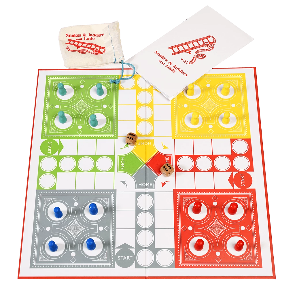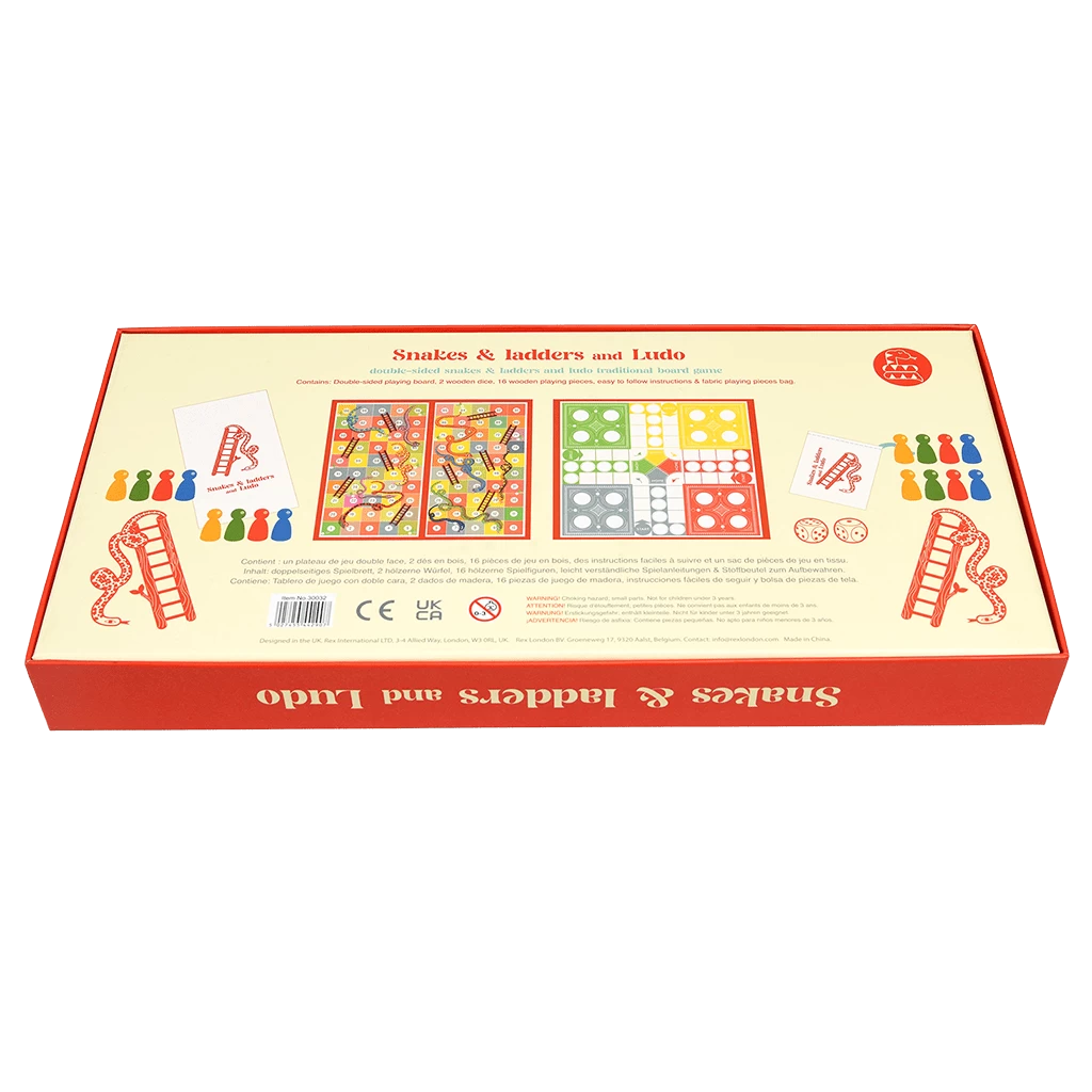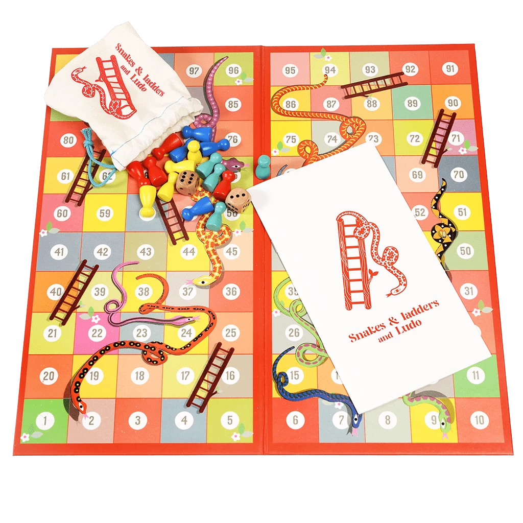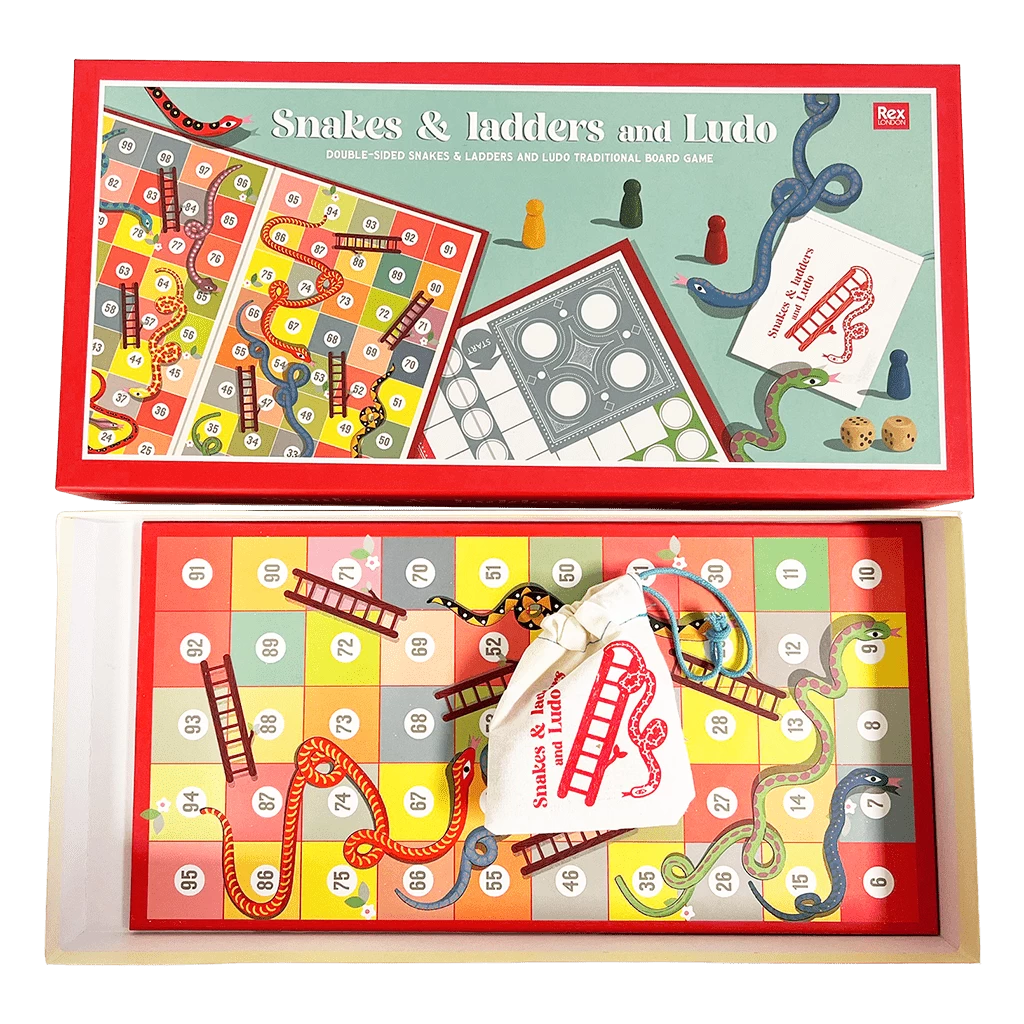 Two traditional board games, one box! All you need to play either Snakes & Ladders or Ludo (or both!) is included in this stylish retro-style board game box. Perfect for screen-free entertainment at any time.