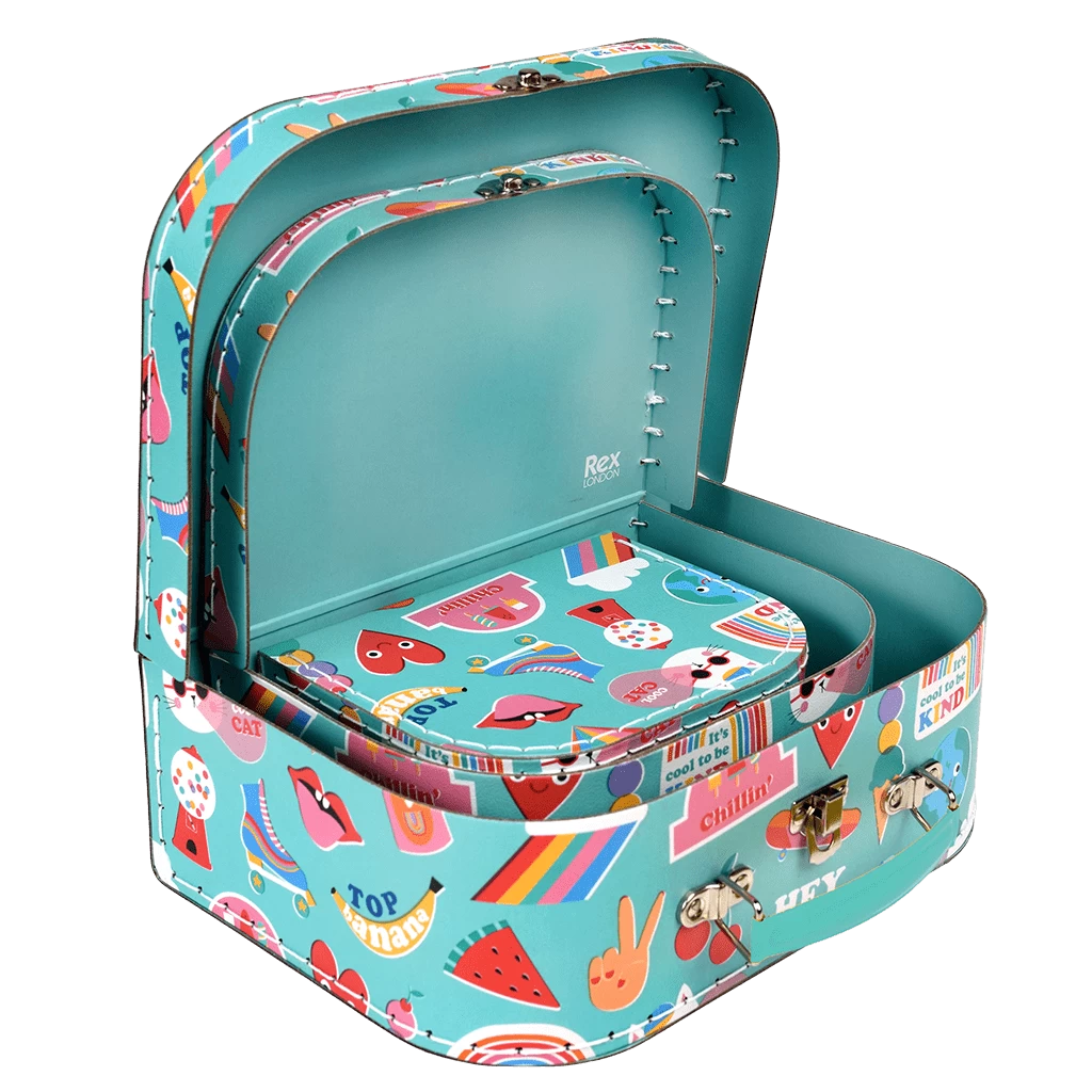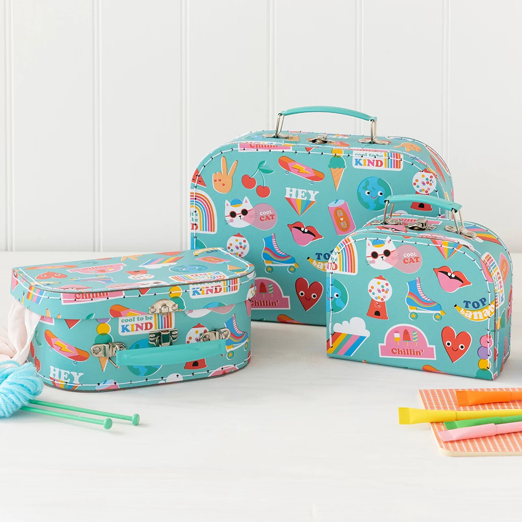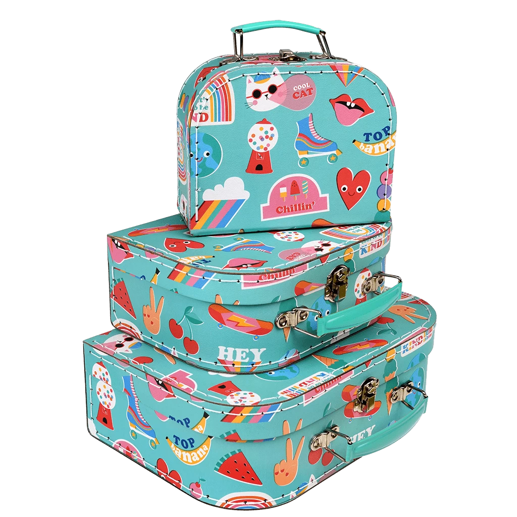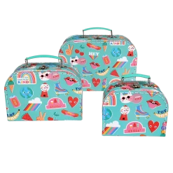 A fun and practical addition to any nursery or playroom, this set of three nesting storage suitcases features our bright Top Banana design, and is ideal for storing toys, stationery, crafts and more.