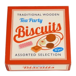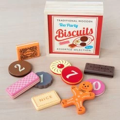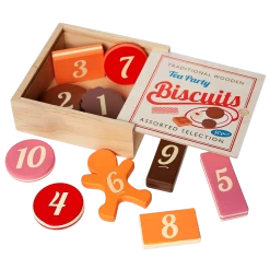 This traditional toy contains a delicious assortment of 10 wooden biscuits, all served up in a retro wooden box. Each biscuit is also numbered on the reverse, for some fun learning through play.