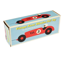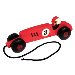 Great for mini motorheads, our red vintage racer pull toy also comes in blue!