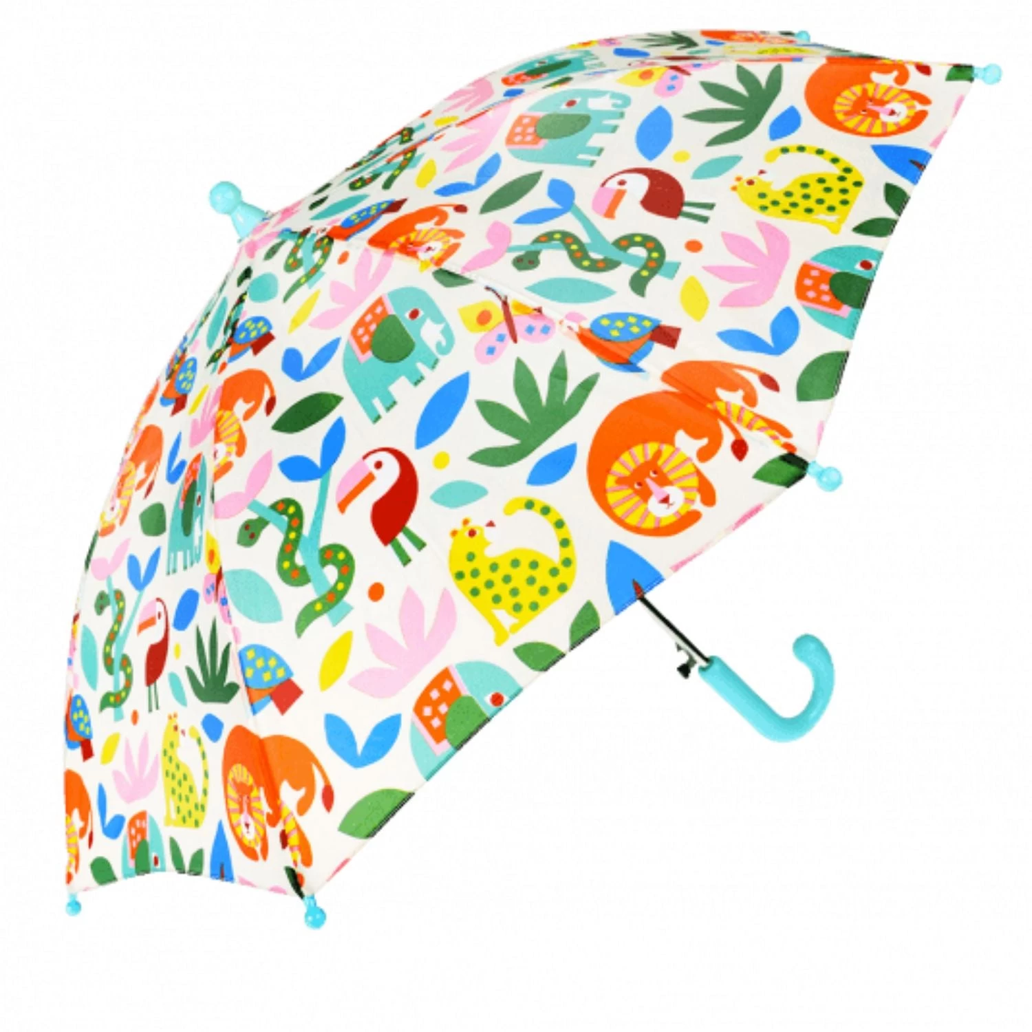 Brighten up rainy days with this wonderfully colourful children’s umbrella printed with adorable jungle animal characters! Lightweight with no sharp points and spring-loaded for easy opening, it’s ideal for kids aged 3+.