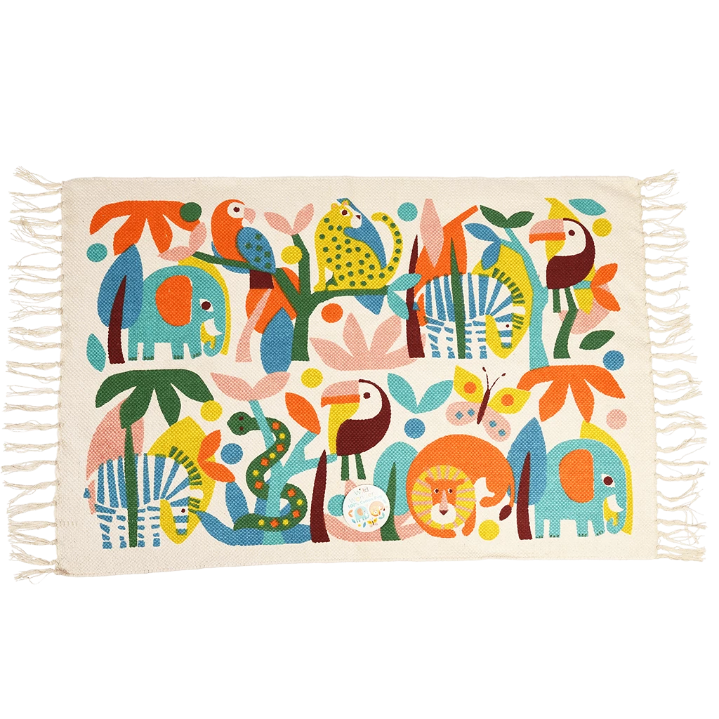 Make a statement at home with this bright rug, ideal for the bedroom of any young animal fan! This lightweight rug is made from 100% cotton and features a bright pattern of wild animals from our Wild Wonders collection.