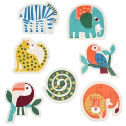 One box, seven puzzles! Little ones can create characters from our Wild Wonders collection, including a leopard, parrot, lion, toucan, zebra, snake and elephant.