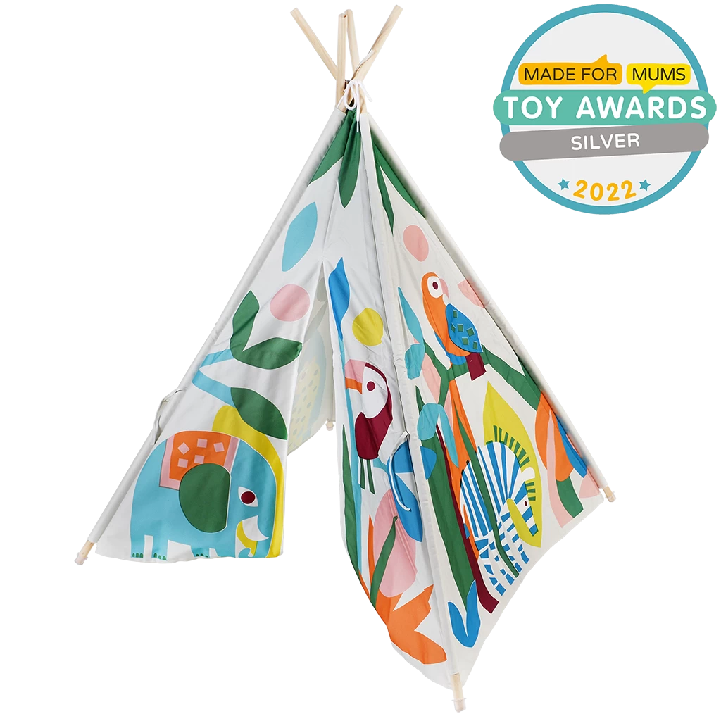 Whether they’re quietly reading inside or dreaming up wonderful make-believe adventures, playtime (or downtime!) can always be magical in our bright and cheery Wild Wonders teepee tent. Great for garden parties, picnics and bedrooms. Matching Wild Wonders children’s accessories available.