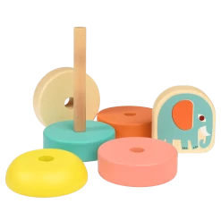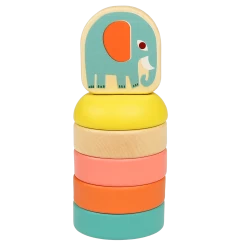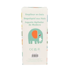 - Includes stack holder, four coloured circular pieces, topped with a wooden elephant from our Wild Wonders design