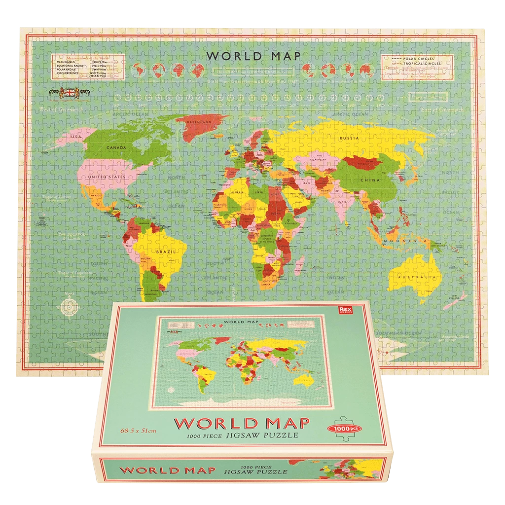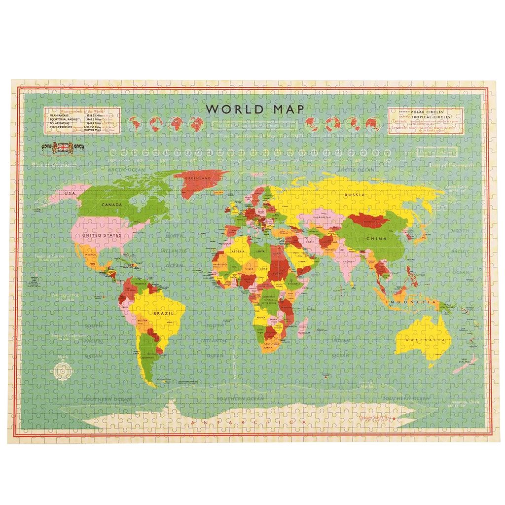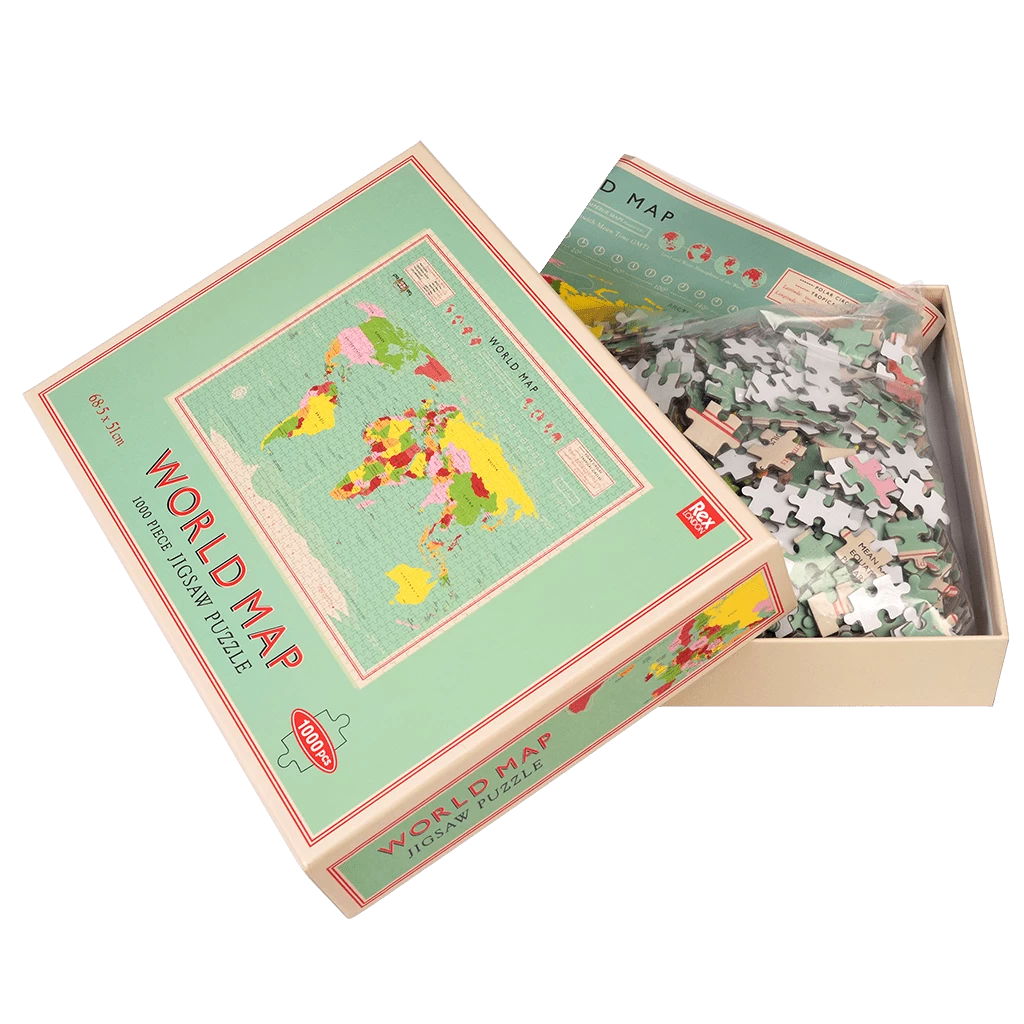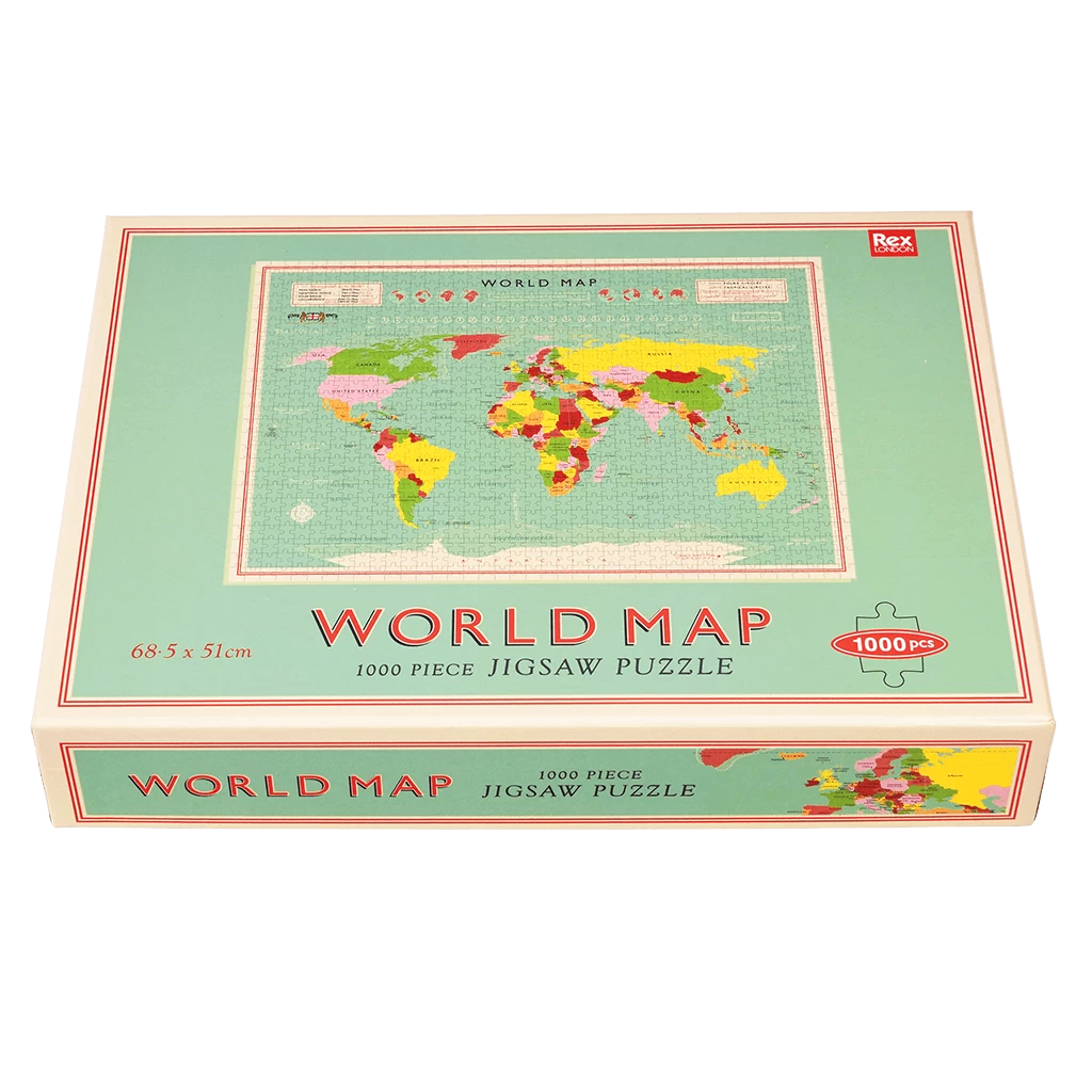 Improve your geography as you complete this World Map puzzle, perfect for whiling away the hours on a rainy day. This 1,000 piece puzzle includes a colour sheet of the puzzle to help guide you.